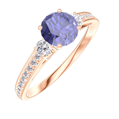 « L'ATELIER » NR. 1008539Inel Aur roz 18 carate - Safir sintetic rotund 0.5 carate - Pietre laterale Diamante de laborator - Încrustare Diamante de laborator 4.5