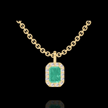 « L'ATELIER » Nº1016420Pandantiv Aur galben 9 carate - Smarald sintetic Smarald 0.3 carate - Halo Diamante de laborator - Lanţ Zale