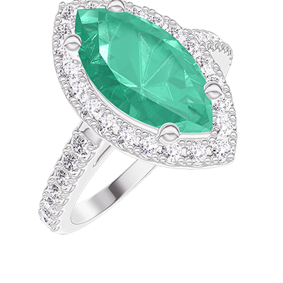 « L'ATELIER » NR. 1276136Inel Aur alb 18 carate - Smarald Marquise 1 carate - Halo Diamant - Încrustare Diamant