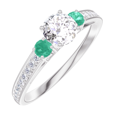 « L'ATELIER » NR. 160087Inel Aur alb 18 carate - Diamant rotund 0.3 carate - Pietre laterale Smarald - Încrustare Diamant 4.5