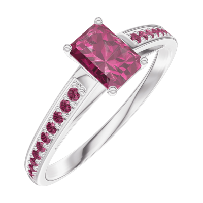 « L'ATELIER » Nº160812Inel Aur alb 9 carate - Rubin Smarald 0.3 carate - Încrustare Rubin