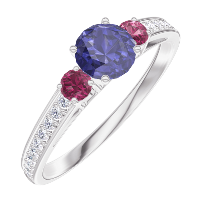 « L'ATELIER » NR. 161248Inel Aur alb 9 carate - Safir albastru rotund 0.3 carate - Pietre laterale Rubin - Încrustare Diamant 4.5