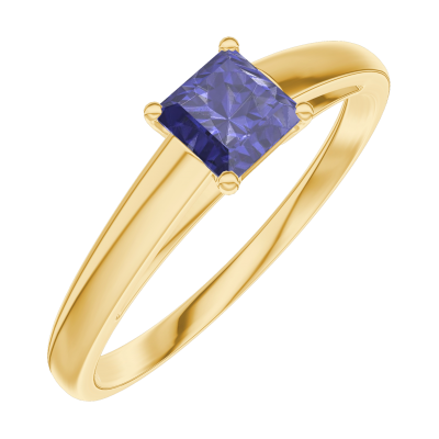 « L'ATELIER » Nº161302Inel Aur galben 9 carate - Safir albastru Princess 0.3 carate