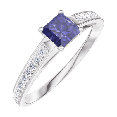 « L'ATELIER » Nº161307Inel Aur alb 18 carate - Safir albastru Princess 0.3 carate - Încrustare Diamant