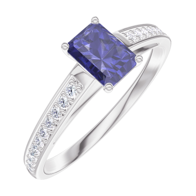 « L'ATELIER » Nº161407Inel Aur alb 18 carate - Safir albastru Smarald 0.3 carate - Încrustare Diamant