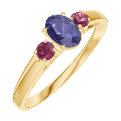 « L'ATELIER » Nº161541Inel Aur galben 18 carate - Safir albastru Oval 0.3 carate - Pietre laterale Rubin 5
