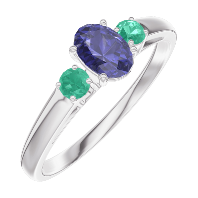 « L'ATELIER » Nº161583Inel Aur alb 18 carate - Safir albastru Oval 0.3 carate - Pietre laterale Smarald 5