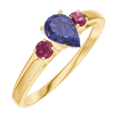 Inel Aur galben 9 carate - Safir albastru Pară 0.3 carate - Pietre laterale Rubin