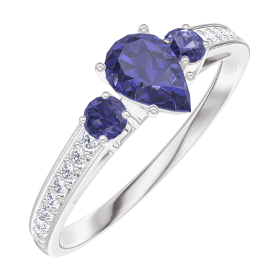 « L'ATELIER » Nº161667Inel Aur alb 18 carate - Safir albastru Pară 0.3 carate - Pietre laterale Safir albastru - Încrustare Diamant