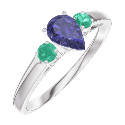 « L'ATELIER » Nº161683Inel Aur alb 18 carate - Safir albastru Pară 0.3 carate - Pietre laterale Smarald