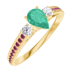 Inel Aur galben 9 carate - Smarald Pară 0.3 carate - Pietre laterale Diamant - Încrustare Rubin