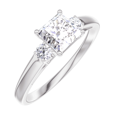 « L'ATELIER » NR. 162524Inel Aur alb 9 carate - Diamant Princess 0.5 carate - Pietre laterale Diamant