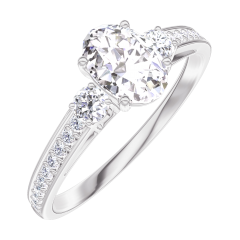Inel Aur alb 18 carate - Diamant Oval 0.5 carate - Pietre laterale Diamant - Încrustare Diamant