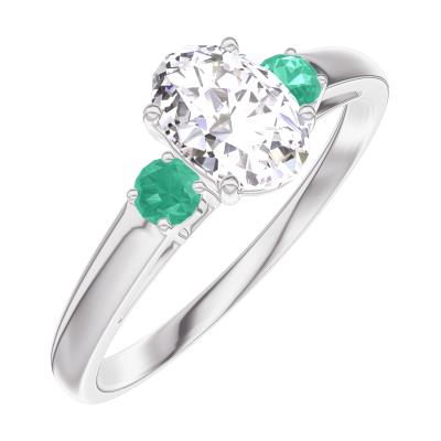 « L'ATELIER » NR. 162783Inel Aur alb 18 carate - Diamant Oval 0.5 carate - Pietre laterale Smarald