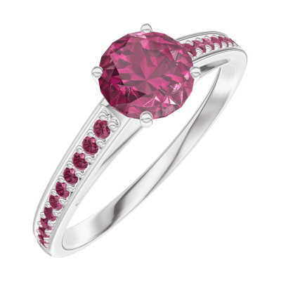 « L'ATELIER » NR. 163012Inel Aur alb 9 carate - Rubin rotund 0.5 carate - Încrustare Rubin 4.5