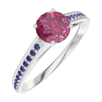 « L'ATELIER » NR. 163016Inel Aur alb 9 carate - Rubin rotund 0.5 carate - Încrustare Safir albastru 4.5