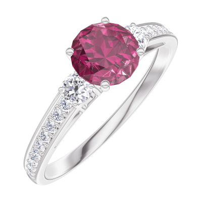 « L'ATELIER » NR. 163027Inel Aur alb 18 carate - Rubin rotund 0.5 carate - Pietre laterale Diamant - Încrustare Diamant 4.5