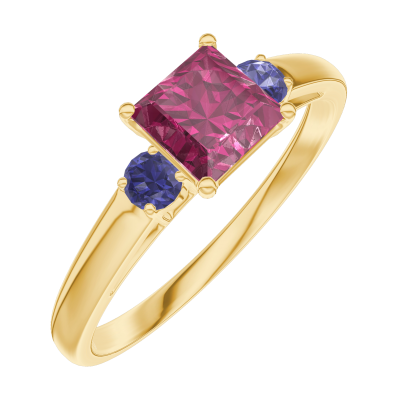 « L'ATELIER » Nº163161Inel Aur galben 18 carate - Rubin Princess 0.5 carate - Pietre laterale Safir albastru