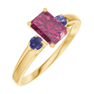« L'ATELIER » Nº163262Inel Aur galben 9 carate - Rubin Smarald 0.5 carate - Pietre laterale Safir albastru