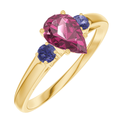 « L'ATELIER » Nº163461Inel Aur galben 18 carate - Rubin Pară 0.5 carate - Pietre laterale Safir albastru