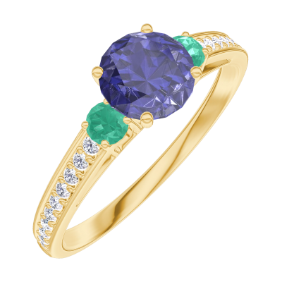 « L'ATELIER » Nº163686Inel Aur galben 9 carate - Safir albastru rotund 0.5 carate - Pietre laterale Smarald - Încrustare Diamant 4.5 (15)