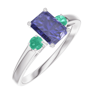 « L'ATELIER » Nº163884Inel Aur alb 9 carate - Safir albastru Smarald 0.5 carate - Pietre laterale Smarald