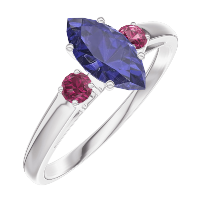« L'ATELIER » Nº164144Inel Aur alb 9 carate - Safir albastru Marquise 0.5 carate - Pietre laterale Rubin