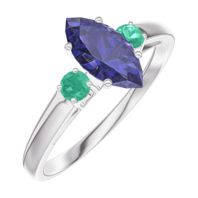 « L'ATELIER » Nº164183Inel Aur alb 18 carate - Safir albastru Marquise 0.5 carate - Pietre laterale Smarald