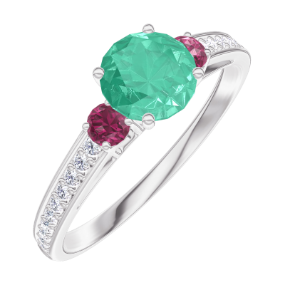 « L'ATELIER » Nº164248Inel Aur alb 9 carate - Smarald rotund 0.5 carate - Pietre laterale Rubin - Încrustare Diamant 4.5 (16)