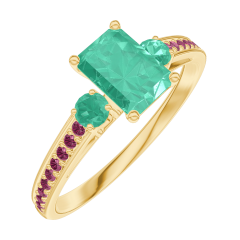 Inel Aur galben 18 carate - Smarald Smarald 0.5 carate - Pietre laterale Smarald - Încrustare Rubin