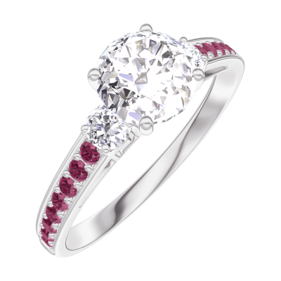 « L'ATELIER » NR. 164831Inel Aur alb 18 carate - Diamant rotund 0.7 carate - Pietre laterale Diamant - Încrustare Rubin 4.9