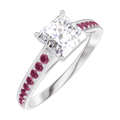 « L'ATELIER » NR. 164912Inel Aur alb 9 carate - Diamant Princess 0.7 carate - Încrustare Rubin