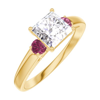 « L'ATELIER » Nº164942Inel Aur galben 9 carate - Diamant Princess 0.7 carate - Pietre laterale Rubin