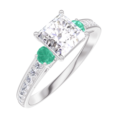 « L'ATELIER » NR. 164987Inel Aur alb 18 carate - Diamant Princess 0.7 carate - Pietre laterale Smarald - Încrustare Diamant