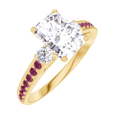 « L'ATELIER » NR. 165029Inel Aur galben 18 carate - Diamant Smarald 0.7 carate - Pietre laterale Diamant - Încrustare Rubin