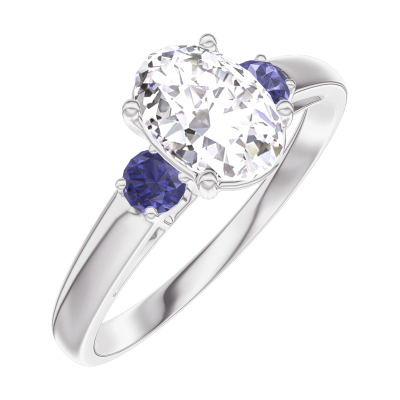« L'ATELIER » NR. 165164Inel Aur alb 9 carate - Diamant Oval 0.7 carate - Pietre laterale Safir albastru