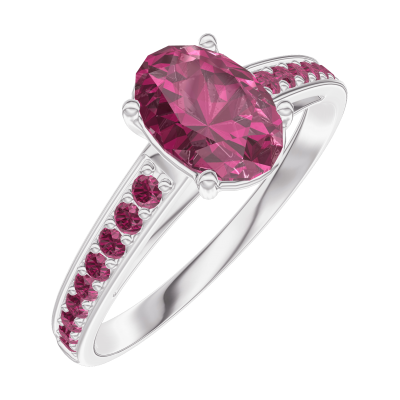 « L'ATELIER » NR. 165712Inel Aur alb 9 carate - Rubin Oval 0.7 carate - Încrustare Rubin