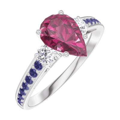 « L'ATELIER » Nº165836Inel Aur alb 9 carate - Rubin Pară 0.7 carate - Pietre laterale Diamant - Încrustare Safir albastru