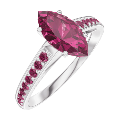 « L'ATELIER » NR. 165912Inel Aur alb 9 carate - Rubin Marquise 0.7 carate - Încrustare Rubin