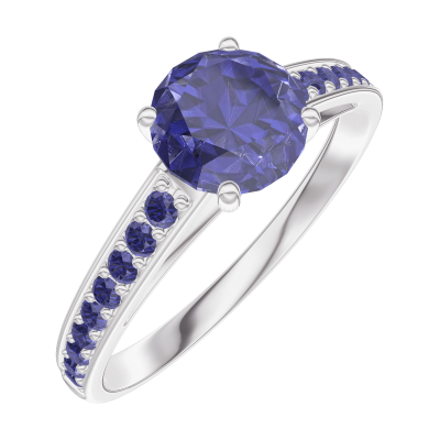 « L'ATELIER » Nº166015Inel Aur alb 18 carate - Safir albastru rotund 0.7 carate - Încrustare Safir albastru 4.9