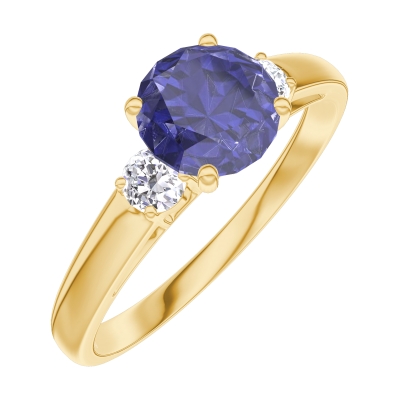 « L'ATELIER » Nº166022Inel Aur galben 9 carate - Safir albastru rotund 0.7 carate - Pietre laterale Diamant 5