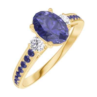 « L'ATELIER » Nº166334Inel Aur galben 9 carate - Safir albastru Oval 0.7 carate - Pietre laterale Diamant - Încrustare Safir albastru