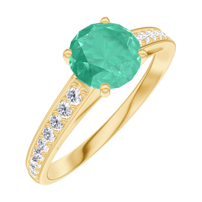 « L'ATELIER » NR. 166606Inel Aur galben 9 carate - Smarald rotund 0.7 carate - Încrustare Diamant 4.9
