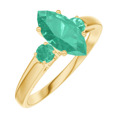 « L'ATELIER » Nº167182Inel Aur galben 9 carate - Smarald Marquise 0.7 carate - Pietre laterale Smarald