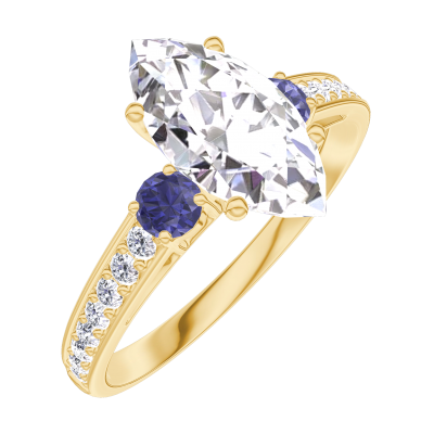 « L'ATELIER » NR. 167765Inel Aur galben 18 carate - Diamant Marquise 1 carate - Pietre laterale Safir albastru - Încrustare Diamant