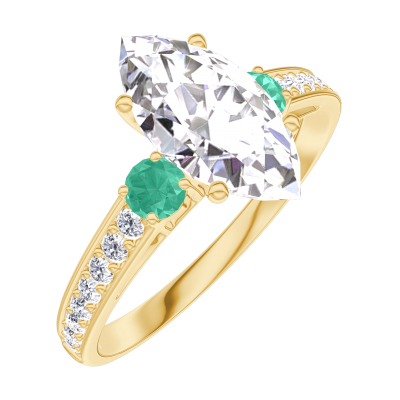 « L'ATELIER » NR. 167786Inel Aur galben 9 carate - Diamant Marquise 1 carate - Pietre laterale Smarald - Încrustare Diamant