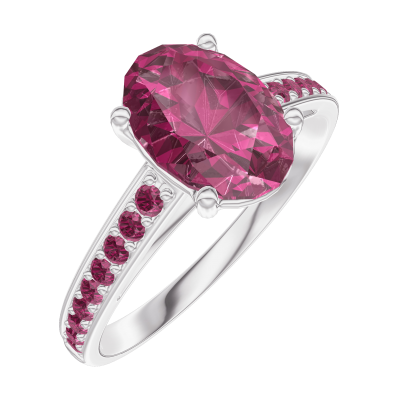 « L'ATELIER » NR. 168112Inel Aur alb 9 carate - Rubin Oval 1 carate - Încrustare Rubin 4.7