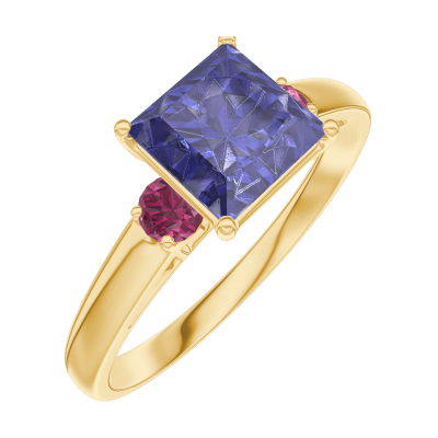 « L'ATELIER » Nº168542Inel Aur galben 9 carate - Safir albastru Princess 1 carate - Pietre laterale Rubin