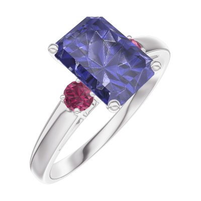 « L'ATELIER » Nº168643Inel Aur alb 18 carate - Safir albastru Smarald 1 carate - Pietre laterale Rubin 4.6