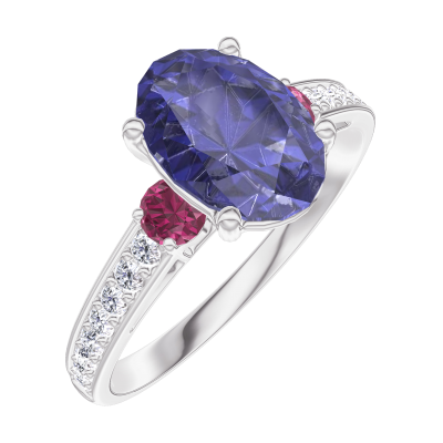 « L'ATELIER » NR. 168748Inel Aur alb 9 carate - Safir albastru Oval 1 carate - Pietre laterale Rubin - Încrustare Diamant 4.7 (9)